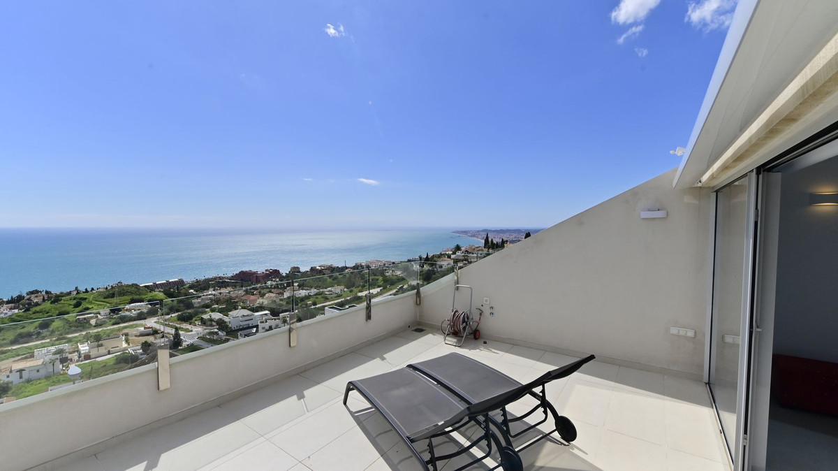 Ontdek dit prachtige duplex penthouse met adembenemend panoramisch uitzicht over zee, de boeddhistische tempel en de baai van Fuengirola. Geniet van twee grote, zuidelijk gelegen terrassen van meer dan 53 m² waar je de zon de hele dag erop hebt.